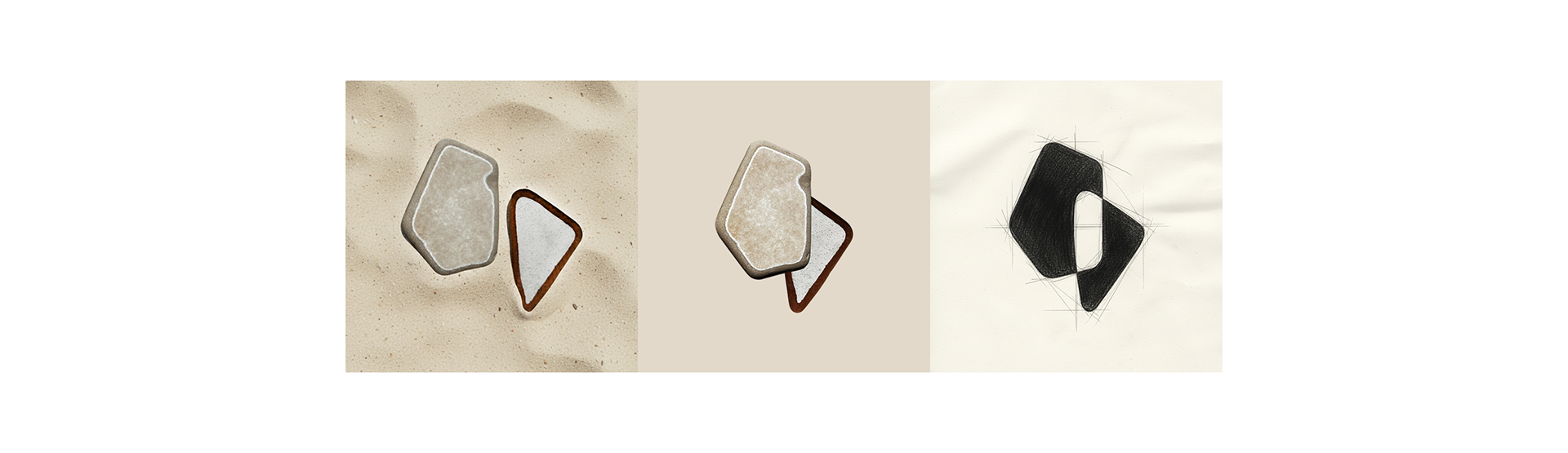 Two asymmetrical, organic forms overlap, creating a space within. The left and right sides represent the therapist and the patient. What happens "in between" is the therapeutic process, dialogue, and collaboration. It also symbolizes insight into emotions. It represents that moment on the beach when you pick up such ceramic piece and perceive its beauty. In therapy, it's the moment when the patient feels noticed and understood.